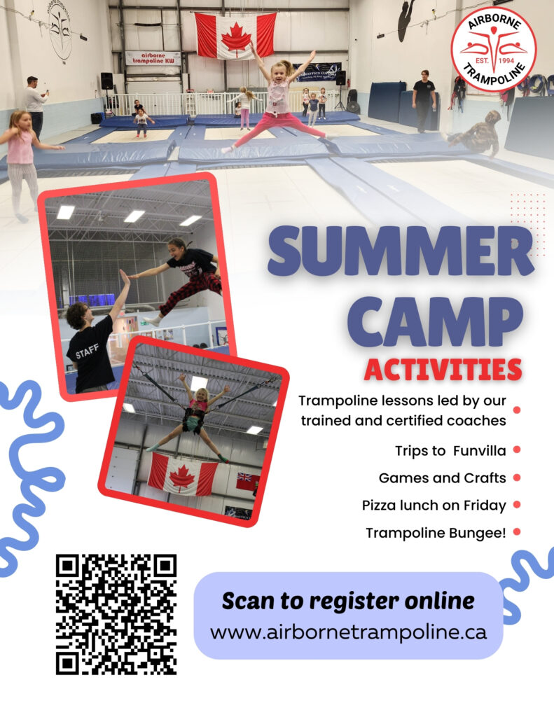 Airborne’s Trampoline Camp is the only trampoline-specific camp in the KW region where campers are taught how to jump safely while learning trampoline skills. All programming is led by NCCP Trampoline Certified coaches.