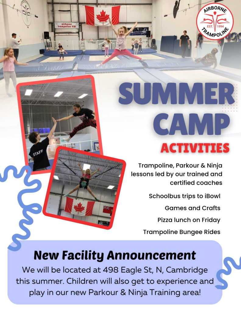 Airborne’s Camp is the only trampoline camp in the KW region where campers are taught how to jump and land safely while learning trampoline, parkour, and ninja skills from coaches in their relevant disciplines.