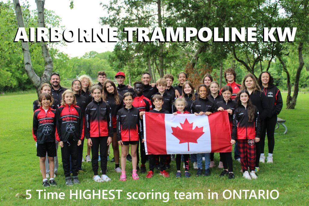 Airborne Trampoline KW is the place to go in the Tri-City area for competitive trampoline. We offer the MOST TRAMPOLINE AND COACH TIME in the region! Our competitive team has won many medals and awards in this exciting Olympic Sport. We have trained athletes who have even gone on to win Olympic Medals and compete at the World Championships for Canada. Gymnastics Ontario has awarded Airborne Trampoline KW’s Competitive Team the highest scoring trampoline team in Ontario in 2018, 2019, (COVID – no competitions), 2022, 2024, 2025, and 2nd place in 2023.